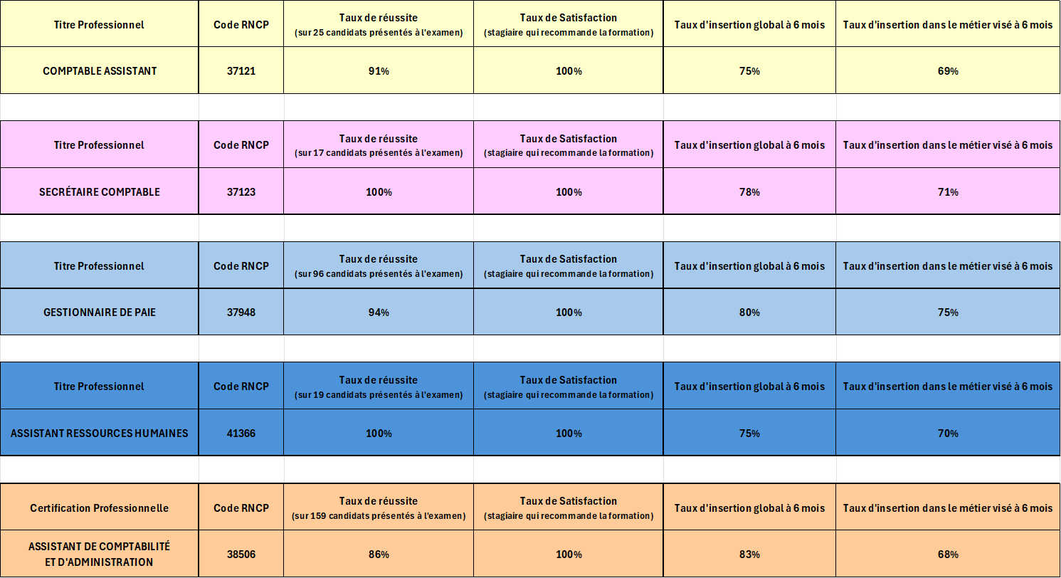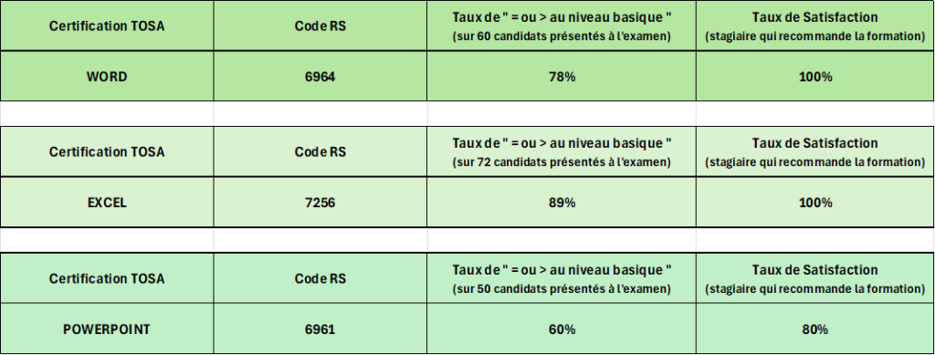 Nos taux de réussite - cdg formation ASCA TOSA PAIE